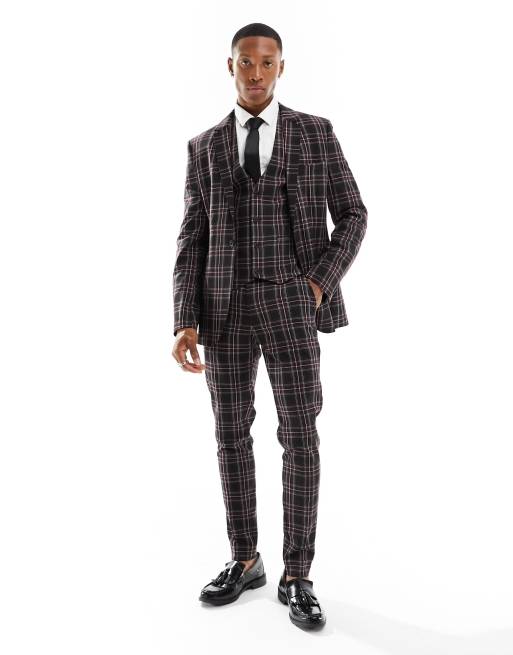 ASOS DESIGN skinny wool mix suit jacket in brown plaid ASOS Very well made.