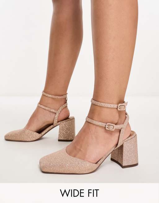 ASOS DESIGN Wide Fit Saffy block heeled mid shoes in glitter ASOS Very well made.