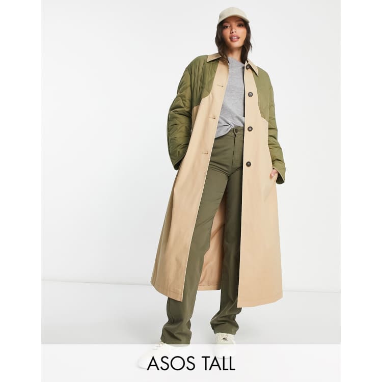 ASOS DESIGN Tall hybrid quilted trench coat in khaki ASOS Very well made.