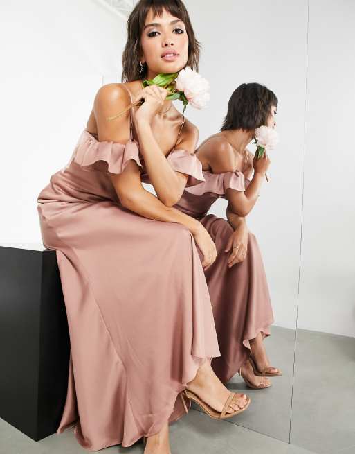 ASOS DESIGN Bridesmaid satin cold shoulder maxi dress in sage Very well made.