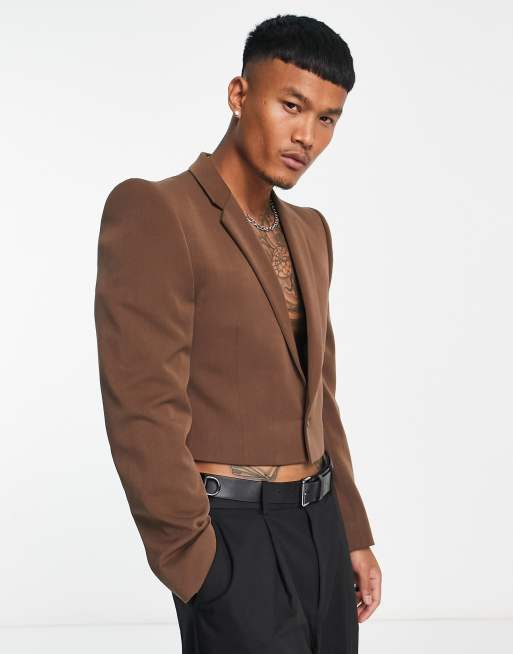 ASOS DESIGN slim fit cropped pagoda shoulder blazer in brown ASOS Very well made.