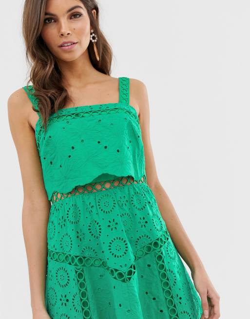 ASOS DESIGN broderie cami midi prom dress with lace inserts ASOS Very well made.