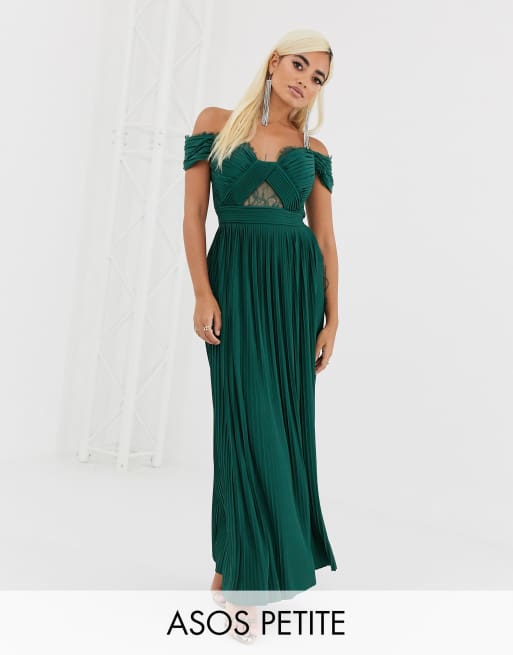 ASOS DESIGN Petite lace and pleat bardot maxi dress ASOS Very well made.