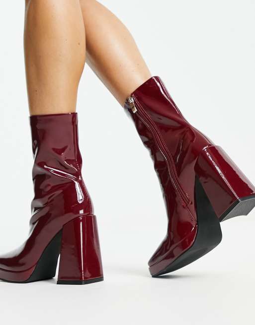 RAID Vista heeled sock boots in dark red vinyl Very well made.