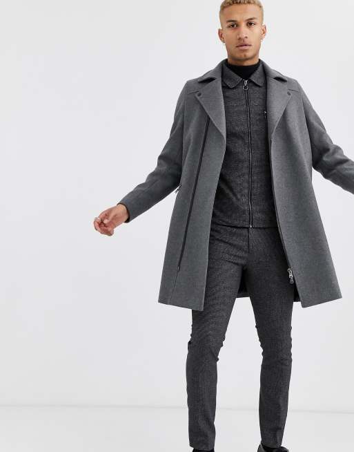 ASOS DESIGN wool mix overcoat in grey with biker detailing ASOS Very well made.