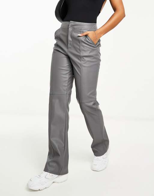ASOS DESIGN faux leather seam detailed straight leg pants in gray Very well made.