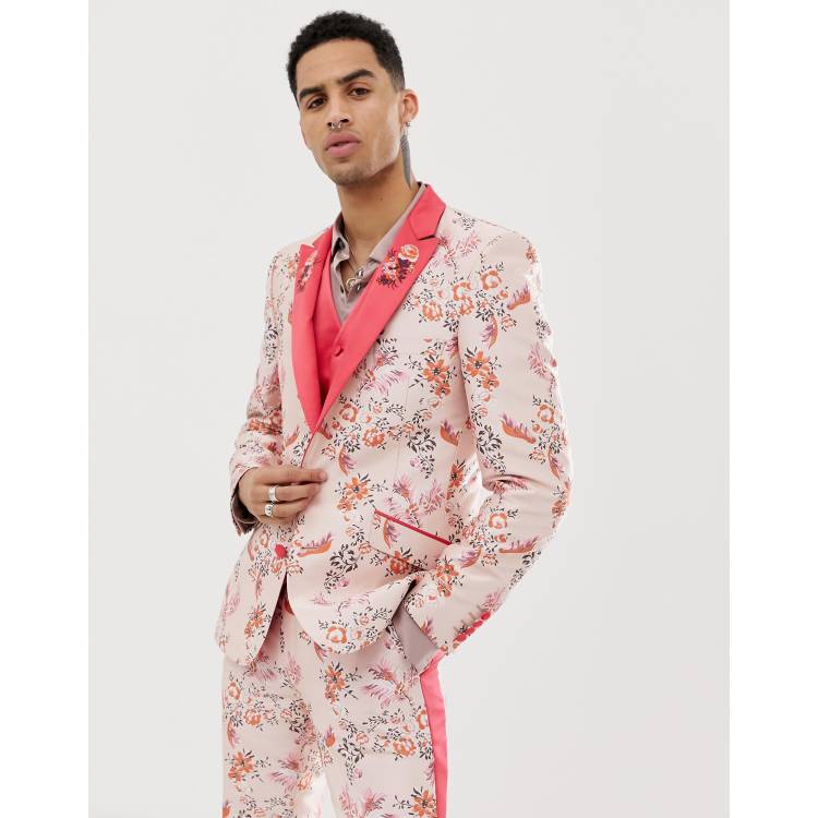 ASOS DESIGN wedding skinny suit jacket with pink floral print ASOS Very well made.