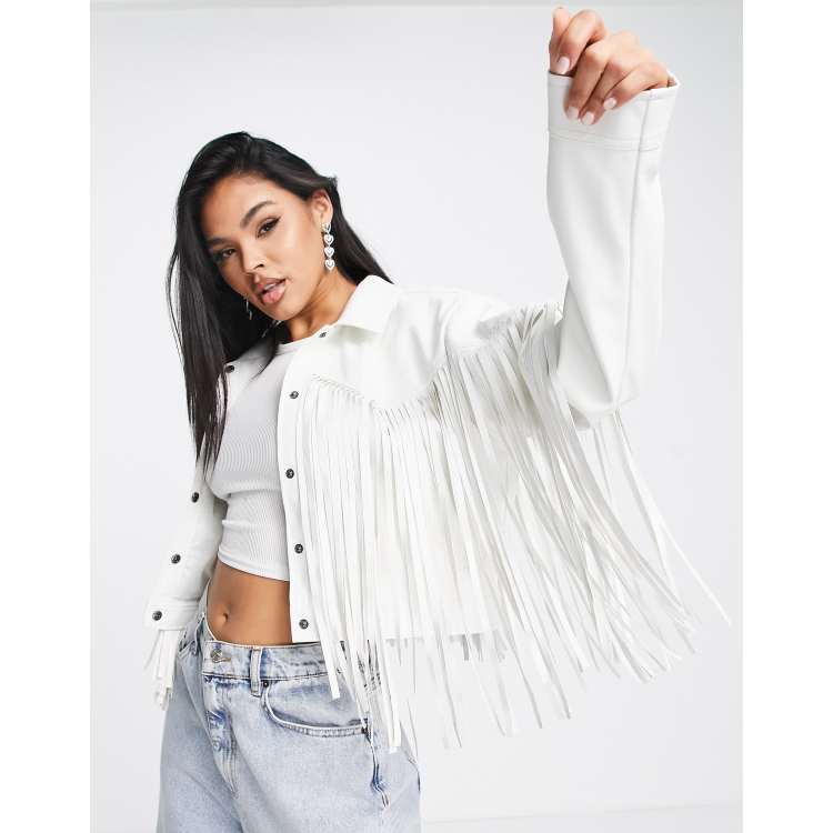 Missguided crop western trucker jacket with fringe detail in white Very well made.