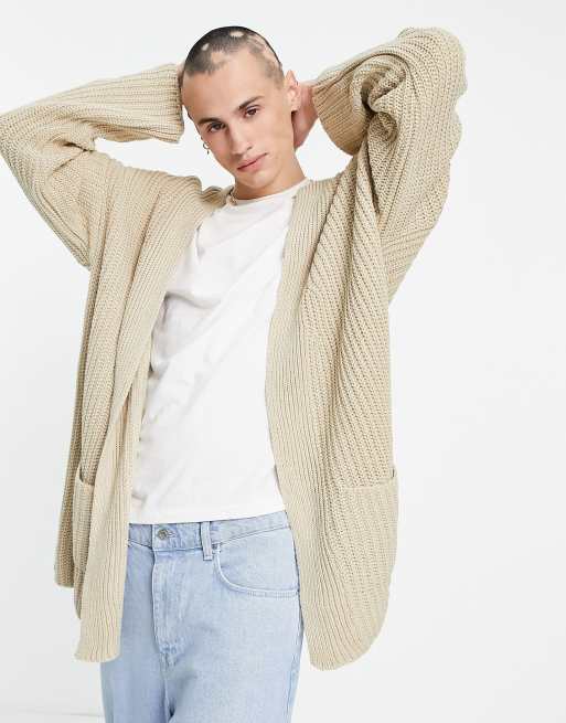 ASOS DESIGN knitted oversized fisherman rib cardigan in beige ASOS Very well made.