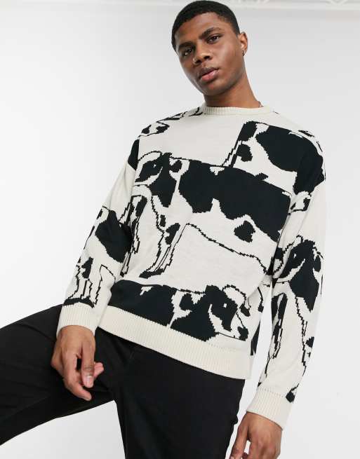 ASOS DESIGN knitted oversized sweater with cow design ASOS Very well made.