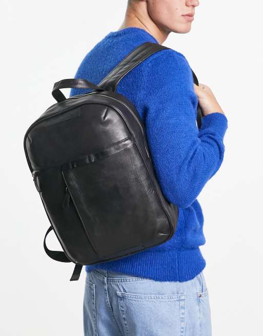 ASOS DESIGN leather zip detail backpack in black ASOS Very well made.