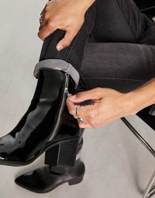 ASOS DESIGN heeled Chelsea boots in black patent faux leather ASOS Very well made.