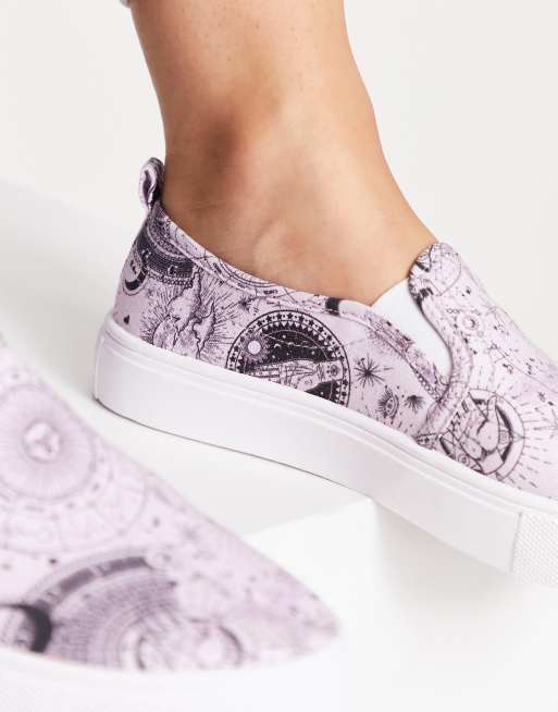 ASOS DESIGN Dotty slip on canvas shoes in lilac celestial print ASOS Very well made.