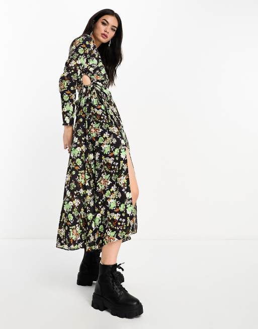 Mango long sleeve keyhole side split leg floral printed dress in Very well made.
