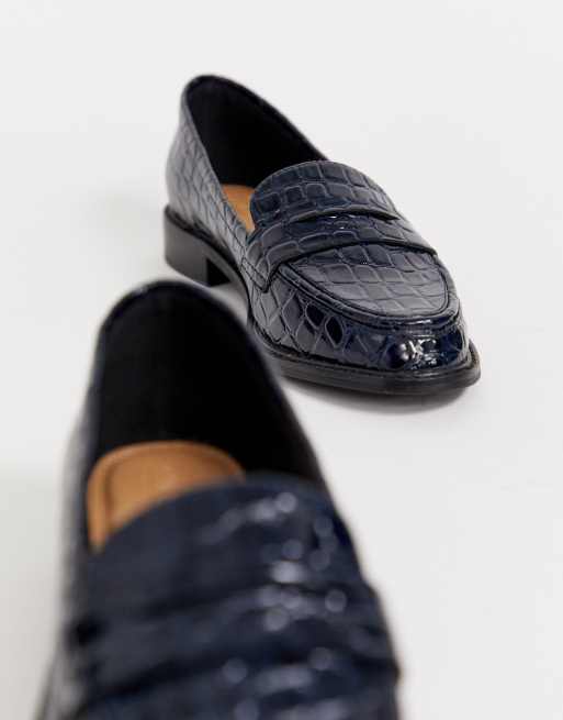 ASOS DESIGN Mantra loafer flat shoes in navy croc ASOS Very well made.