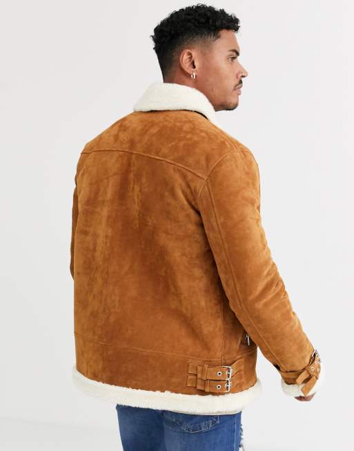 ASOS DESIGN suede aviator jacket with faux fur lining in tan ASOS Very well made.