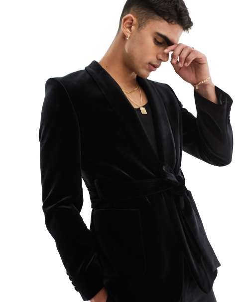 Men s Blazers Double Breast Gray Velvet Blazers ASOS Very well made.