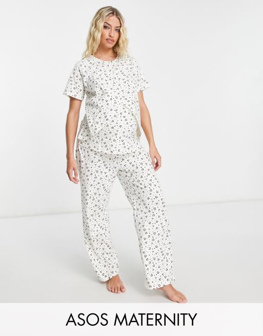 ASOS DESIGN Maternity mix match ditsy heart pyjama set in cream Very well made.