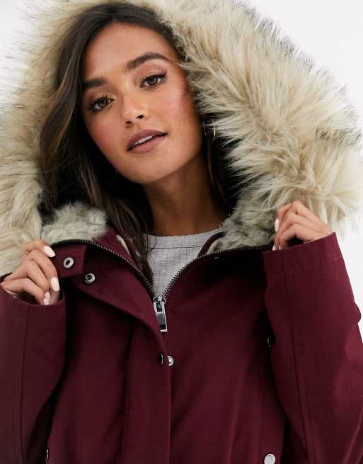 ASOS DESIGN parka with detachable faux fur liner in oxblood ASOS Very well made.