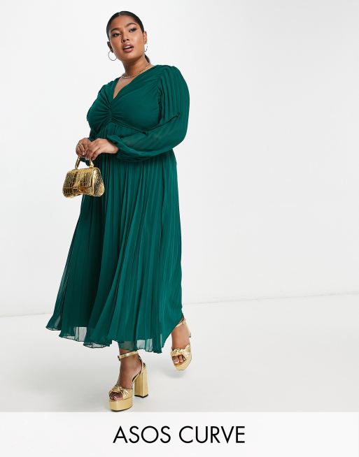 ASOS DESIGN Curve pleated bodice plunge neck midi dress in forest Very well made.