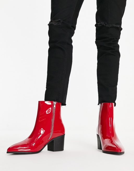 ASOS DESIGN heeled chelsea boot in red patent faux leather ASOS Very well made.