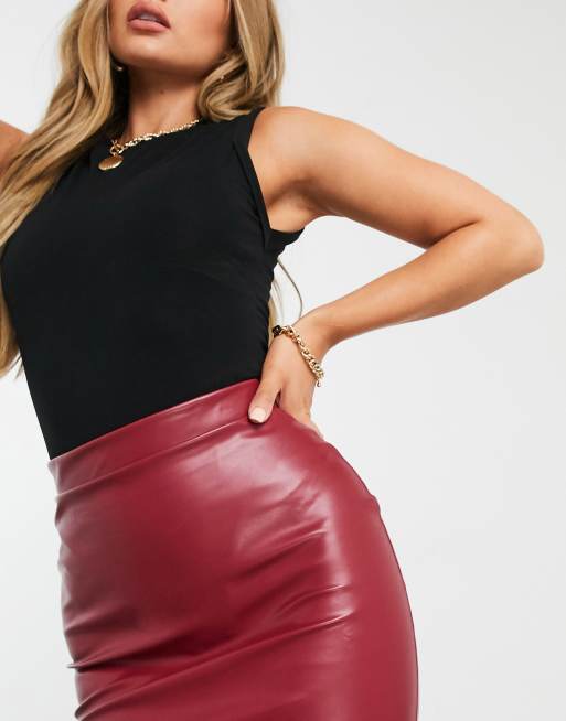 ASOS DESIGN leather look midi pencil skirt in berry ASOS Very well made.