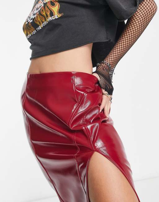 ASOS DESIGN Petite vinyl midi skirt with split detail in red ASOS Very well made.