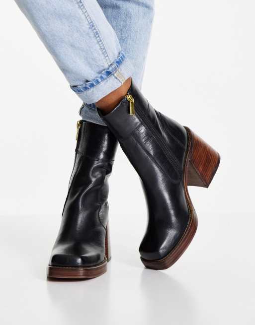 ASOS DESIGN Region leather mid heel boots in black ASOS Very well made.