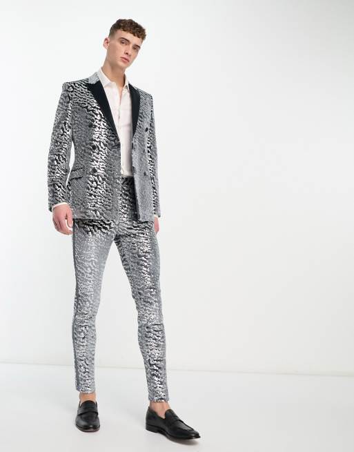 ASOS DESIGN super skinny velvet sequin suit jacket in silver ASOS Very well made.