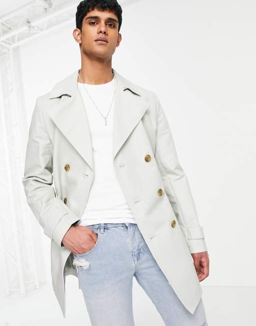 ASOS DESIGN shower resistant double breasted trench coat in stone Very well made.