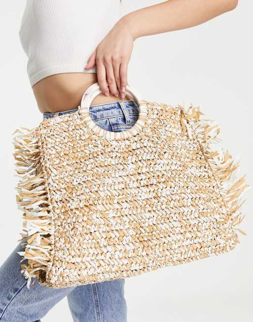 ASOS DESIGN shoulder bag with white resin handle in rattan straw Very well made.