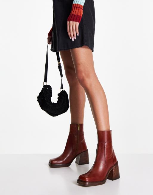 ASOS DESIGN Wide Fit Region leather mid heel boots in tan ASOS Very well made.