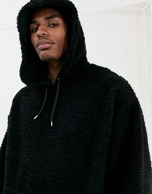 ASOS DESIGN oversized hoodie in black teddy borg ASOS Very well made.