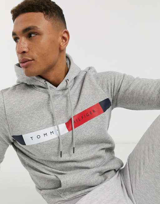 Tommy Hilfiger chest stacked flag logo hoodie in medium grey marl Very well made.