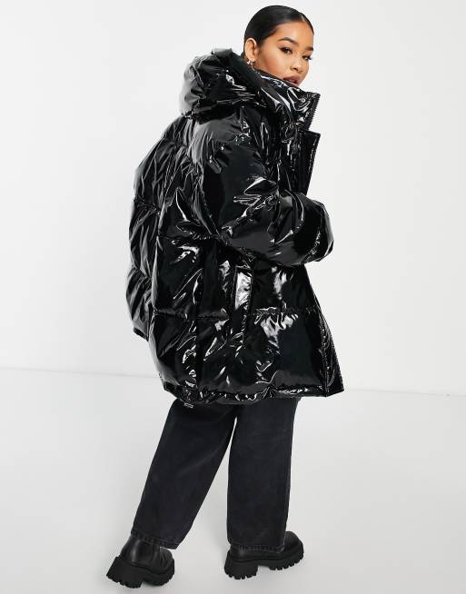 ASOS DESIGN Curve oversized high shine puffer jacket with hood in Very well made.