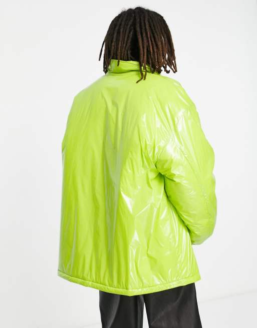 ASOS DESIGN extreme oversized vinyl puffer coach jacket in green Very well made.