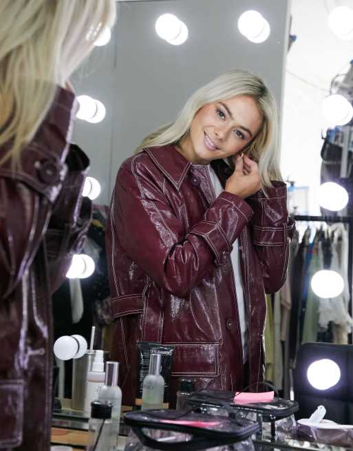 ASOS DESIGN vinyl trench coat with contrast stitching in oxblood Very well made.