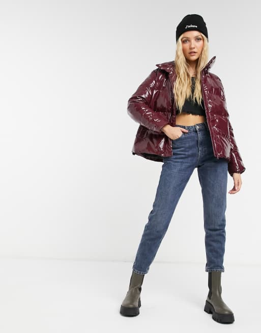 Violet Romance vinyl puffer jacket in burgundy ASOS Very well made.