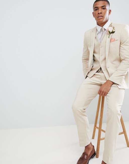ASOS DESIGN wedding skinny suit jacket with square hem in stone ASOS Very well made.