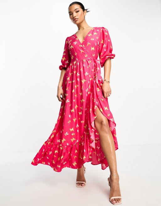 Something New wrap maxi dress in pink butterfly print ASOS Very well made.
