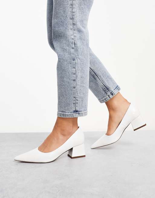 ASOS DESIGN Wide Fit Saint block mid heeled shoes in off white croc Very well made.
