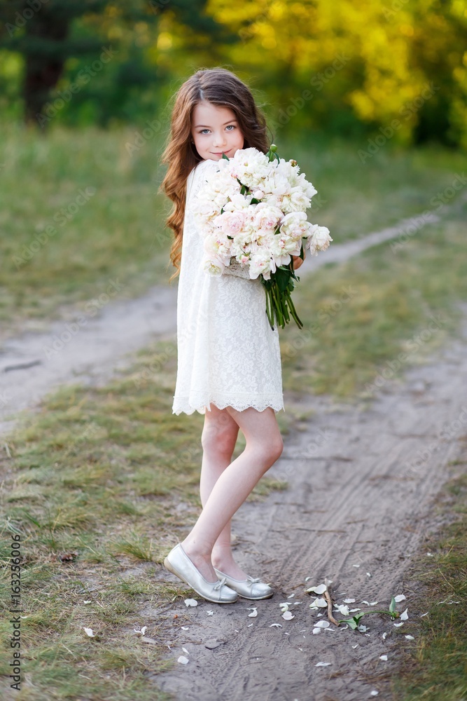 Beautiful Girl Year Old Posing Garden White Dress Easter Time Very well made.