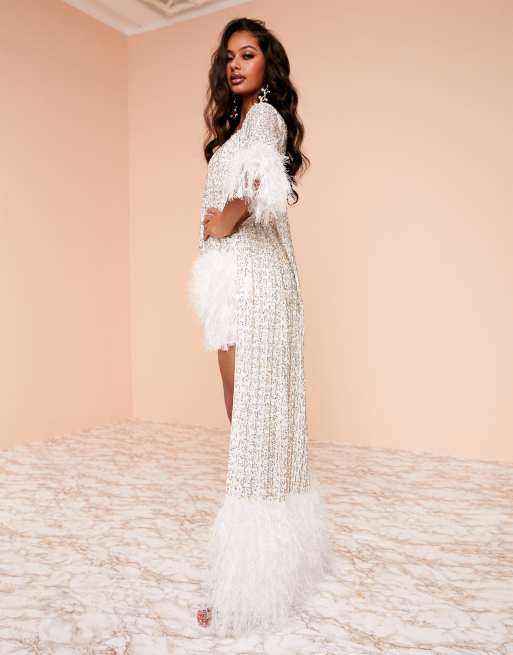 ASOS DESIGN Luxe embellished feather gown jacket in white Very well made.