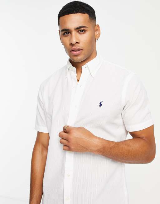 Polo Ralph Lauren icon logo short sleeve seersucker shirt custom regular fit in white Very well made.