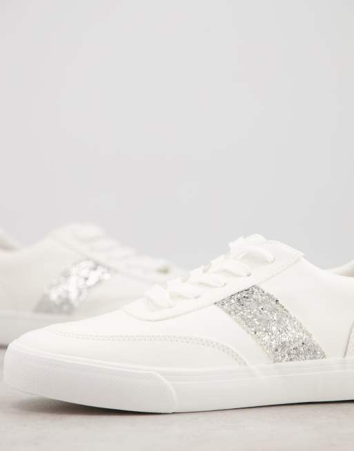 London Rebel bridal glitter side stripe lace up sneakers in white with silver Very well made.