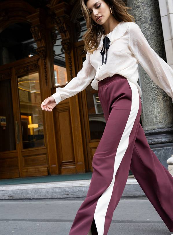 Buy For All the Love Burgundy Printed Side Stripe Wide Leg Trouser 14 Trousers Tu Very well made.