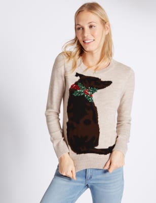 Embellished Dog Print Christmas Jumper M S Collection M S Very well made.
