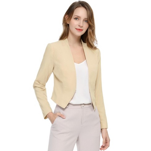 Allegra K Women s Collarless Work Office Long Sleeve Cropped Very well made.