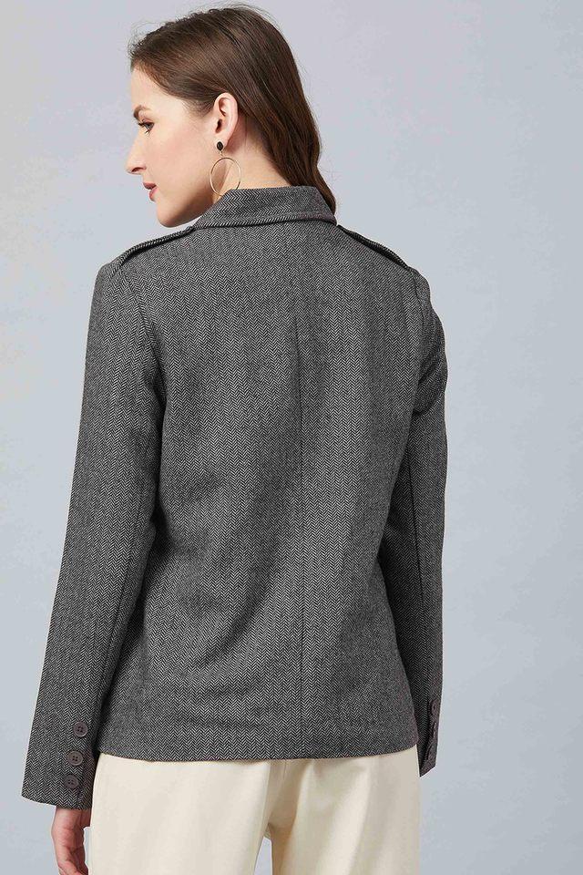 Self Design Spread Collar Wool Women s Casual Jacket Very well made.