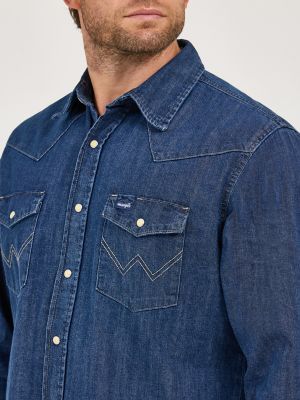 Cowboy Cut Long Sleeve Western Denim Snap Work Shirt in Dark Denim Very well made.